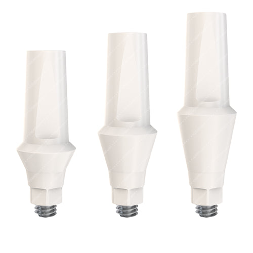 These PEEK temporary anatomic straight abutments are fully compatible with GDT Implants® CON RP Conical implant line, providing a precise fit and stable support during the provisional phase of treatment. Designed for straightforward implant positioning, they offer prosthetic reliability and soft tissue management in temporization cases requiring anatomical contouring. These abutments are ideal for temporary restorations, ensuring biocompatibility, ease of adjustment, and optimal esthetic shaping during healing.