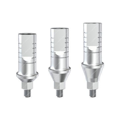 Our Straight Abutments are crafted from high-quality Titanium Grade 5 (Ti-6Al-4V), ensuring exceptional strength, biocompatibility, and long-term durability in all prosthetic procedures. Designed to provide a stable and secure connection between the implant and the final restoration, these abutments offer a clean emergence profile that supports healthy soft tissue and esthetic outcomes.