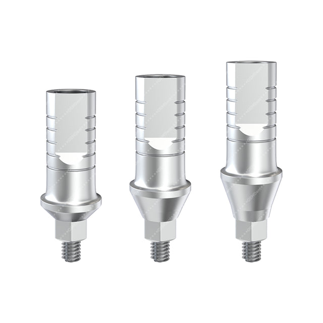 Our Straight Abutments are crafted from high-quality Titanium Grade 5 (Ti-6Al-4V), ensuring exceptional strength, biocompatibility, and long-term durability in all prosthetic procedures. Designed to provide a stable and secure connection between the implant and the final restoration, these abutments offer a clean emergence profile that supports healthy soft tissue and esthetic outcomes.